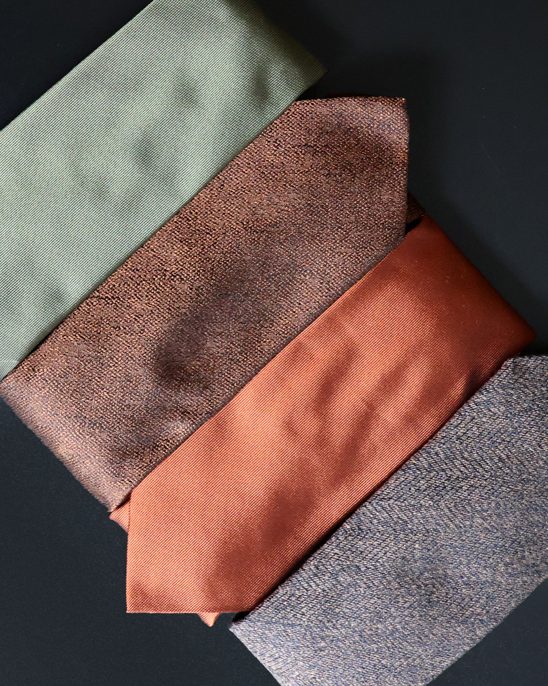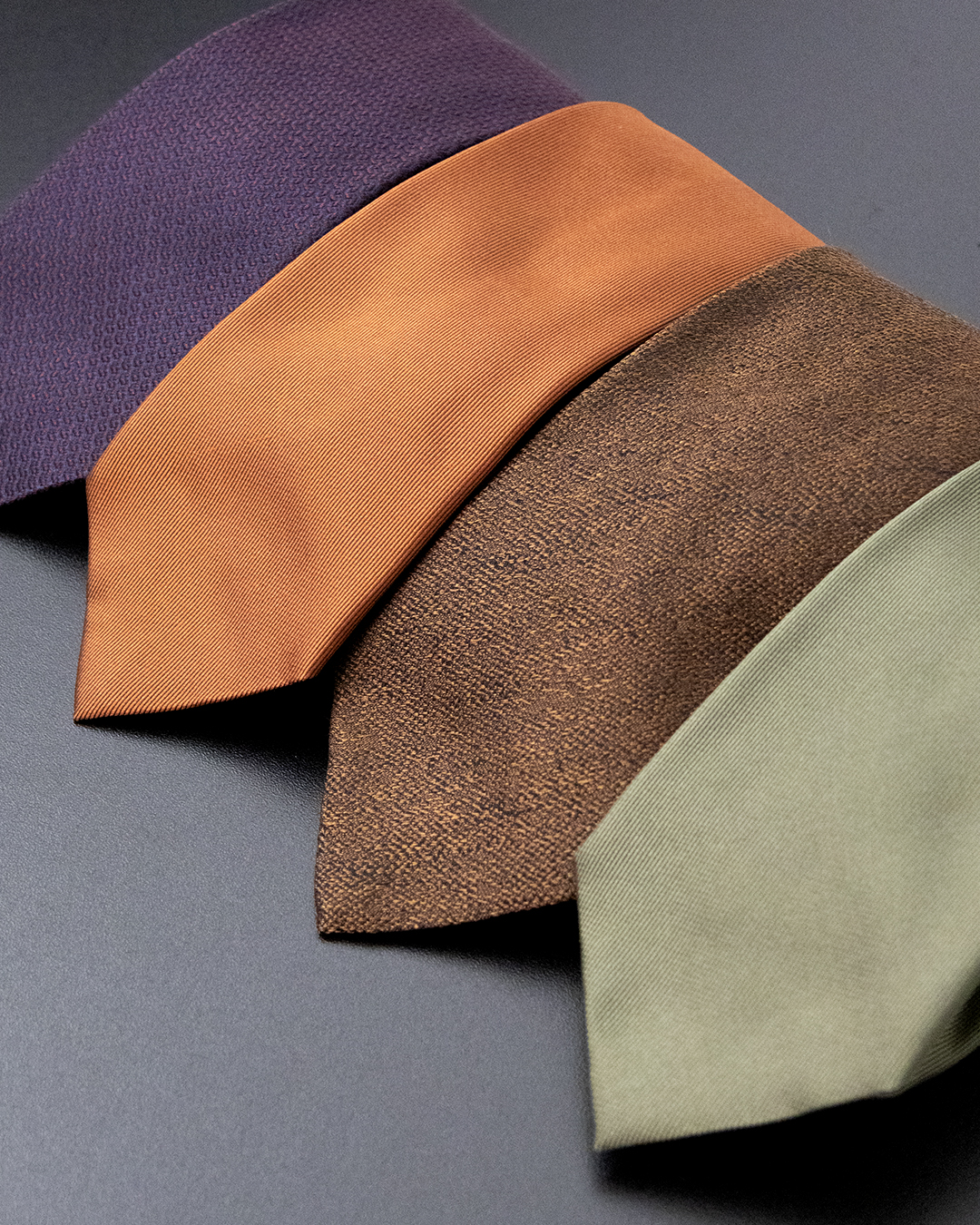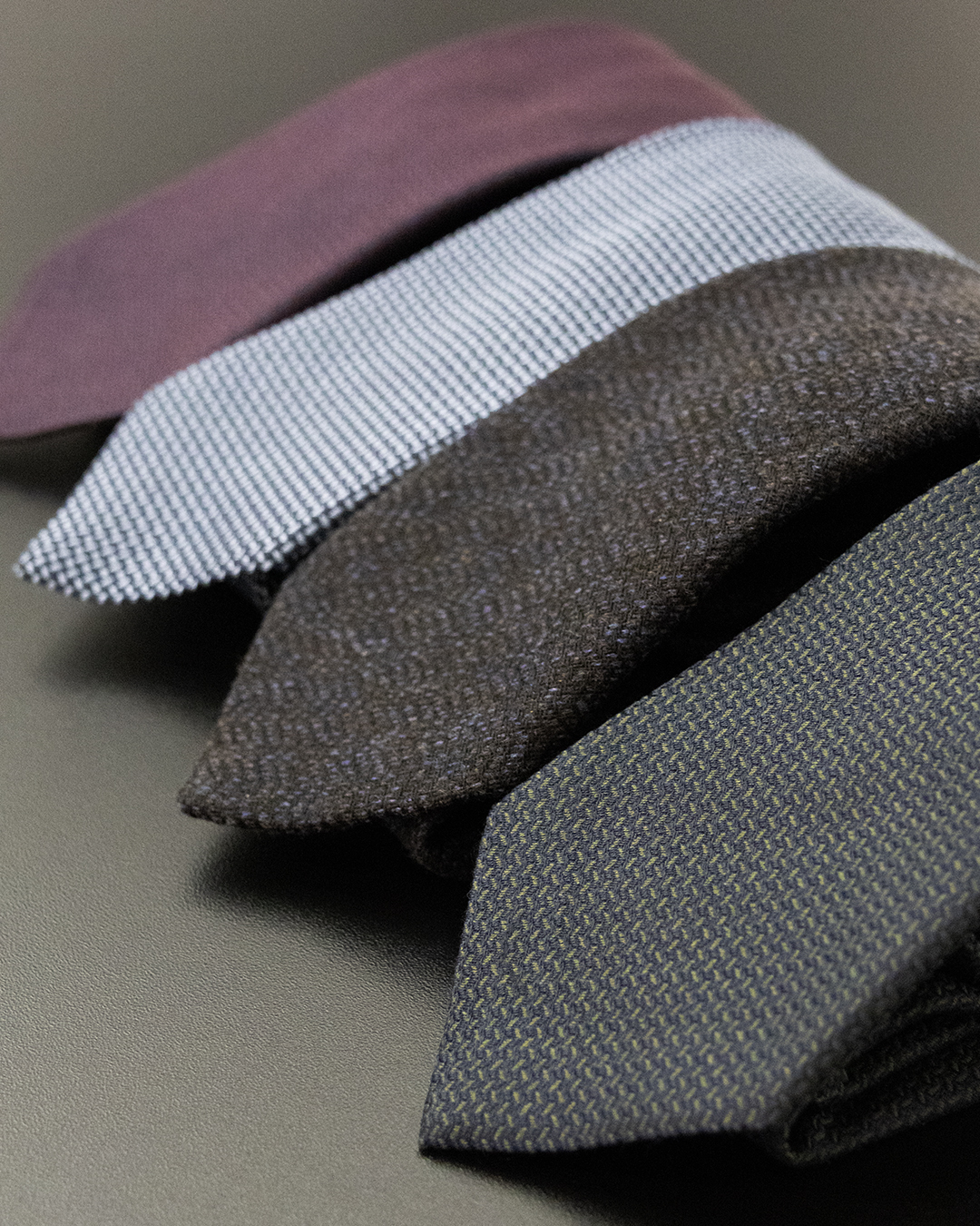 Nos cravates et pochettes confectionnées dans ce tissu se distinguent par leur texture raffinée et leur profondeur visuelle unique.