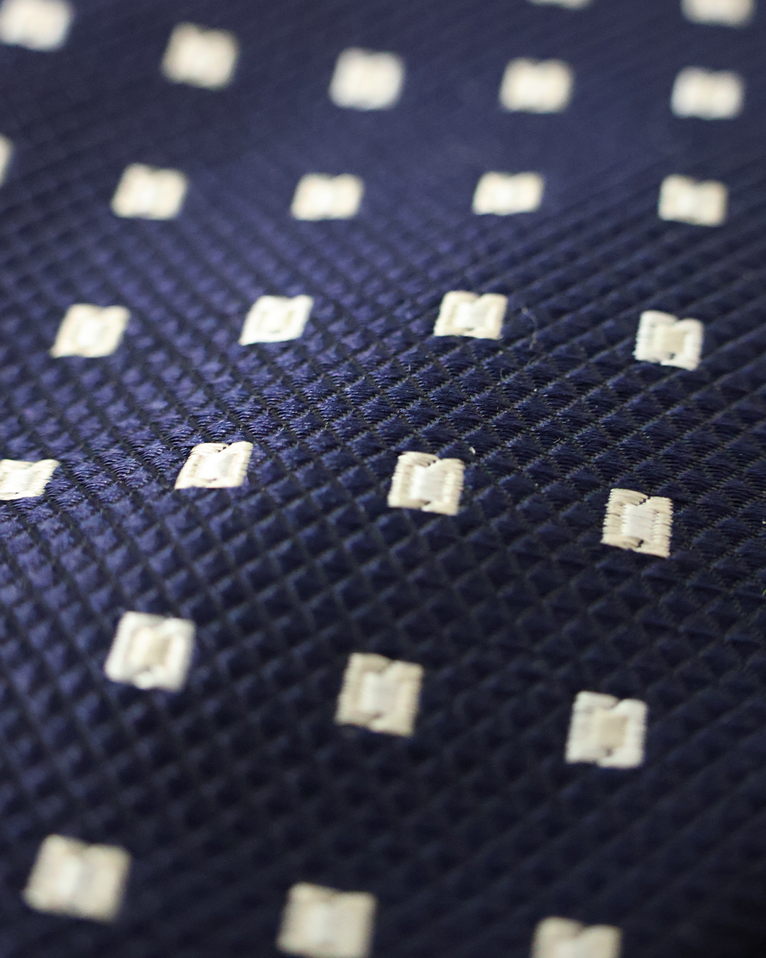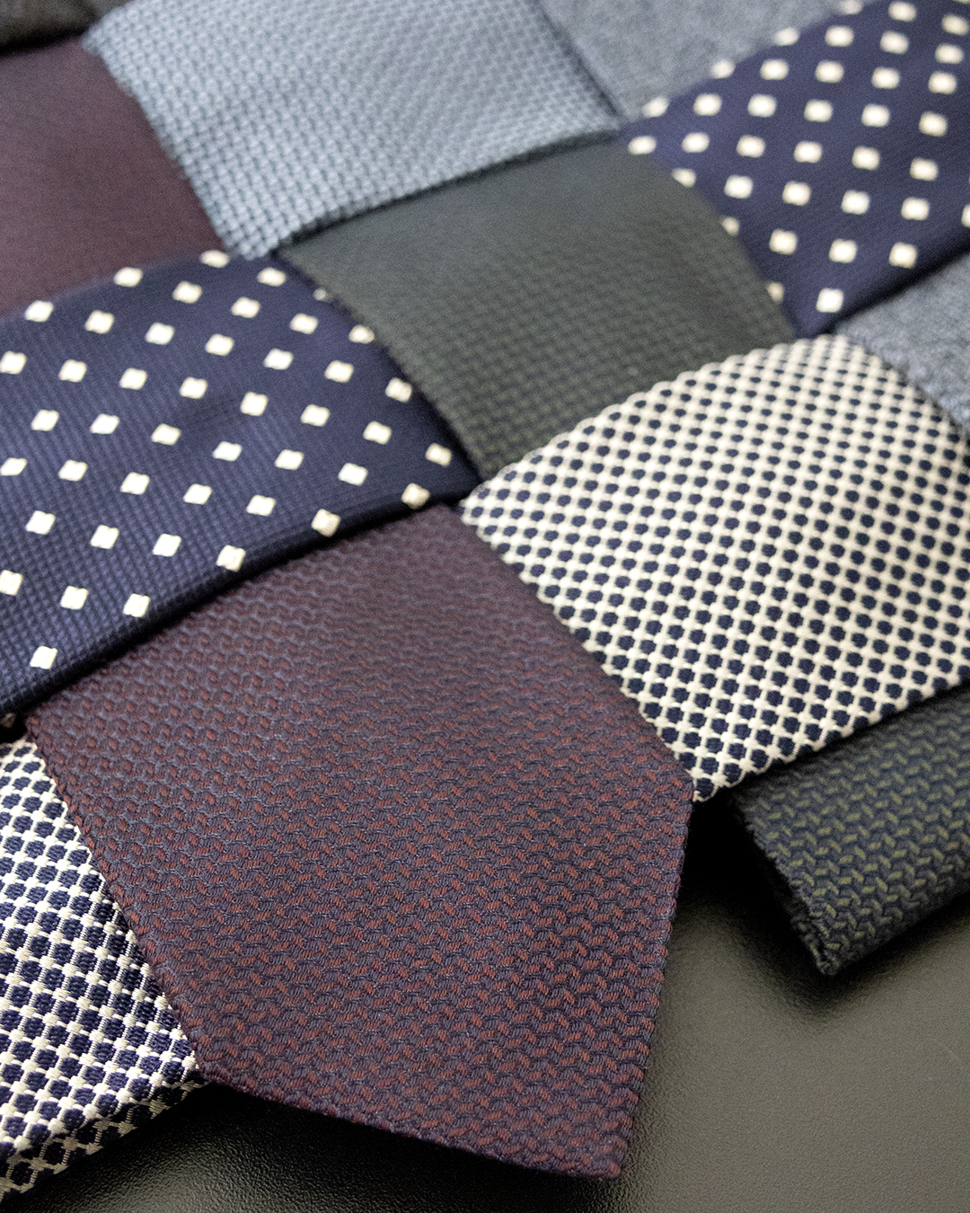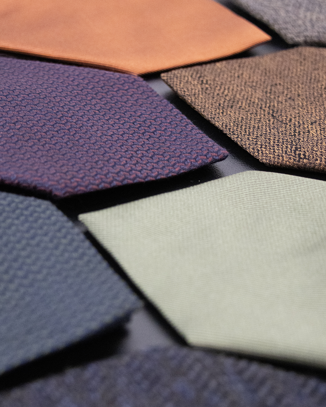 Nos cravates et pochettes confectionnées dans ce tissu se distinguent par leur texture raffinée et leur profondeur visuelle unique.